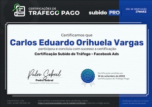 Mi nombre es Carlos Eduardo Orihuela Vargas, de Tupiza - Bolivia. Doctor en Ingeniería Eléctrica, MBA en Marketing Digital y Negocios Digitales y certificado en Facebook Ads (Meta) y Google Ads por la COMUNIDAD SOBRAL, en Brasil.